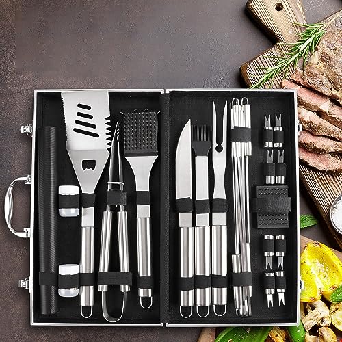 28PCS BBQ Tools Set Grill Accessories for Outdoor Grill Utensils Stainless Steel Grilling Tools Set, Barbecue Accessories Kit Ideal Grilling s for Men Dad