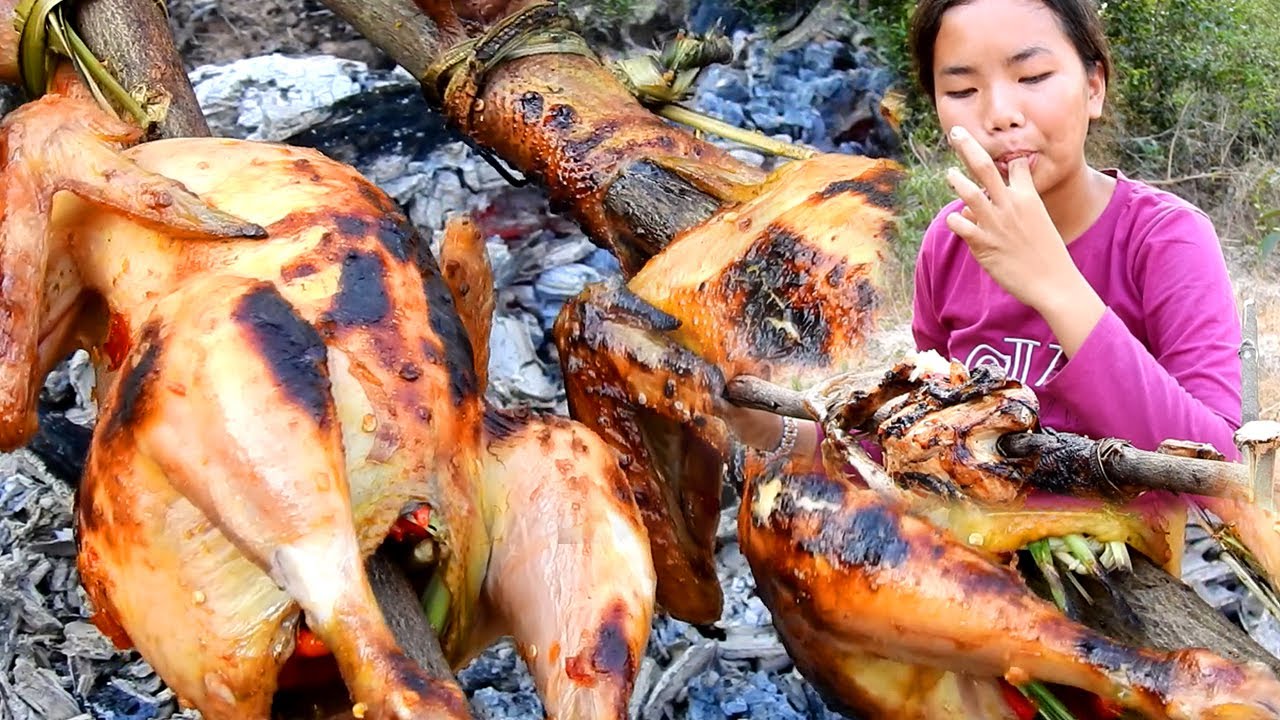 Awesome food! beautiful girls Cooking grill chicken in the forest recipe – Cooking lifestyle