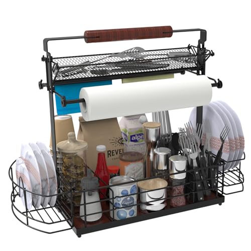 BBQ Caddy,Picnic Caddy,with Handle of Paper Towelroll Holdergrill Caddy,Adjustable Compartment Storage,for OutdoorParty Cutlery Holder,Quick Assemble Grill Accessories Storagebasket Review