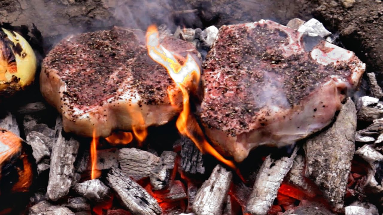 We show you how to cook Caveman steak – directly on the charcoal in a hole dug in the ground. The result is an unbelievable, all-over seared crust on these steaks. This method is a must-try! Links to recipe and item are below in the Show More section or Info Button in the video. Visit BBQGuys: https://www.bbqguys.com/?utm_source=youtube&utm_medium=org&utm_species=social-org-video&utm_term=post-recipes&utm_campaign=&utm_content=caveman-steak