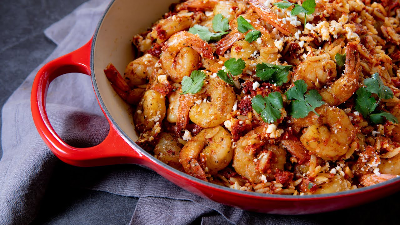 February 2020 Honorable Mention – Grilled Southwest Shrimp on Santa Fe Sun Dried Tomato Pesto Orzo