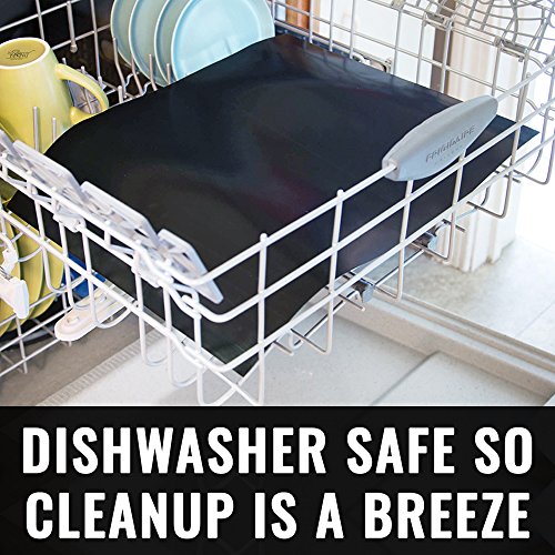 - 100% non-stick and dishwasher safe…use it OVER and OVER AGAIN. No more ruined dinners and clean-up is a breeze.