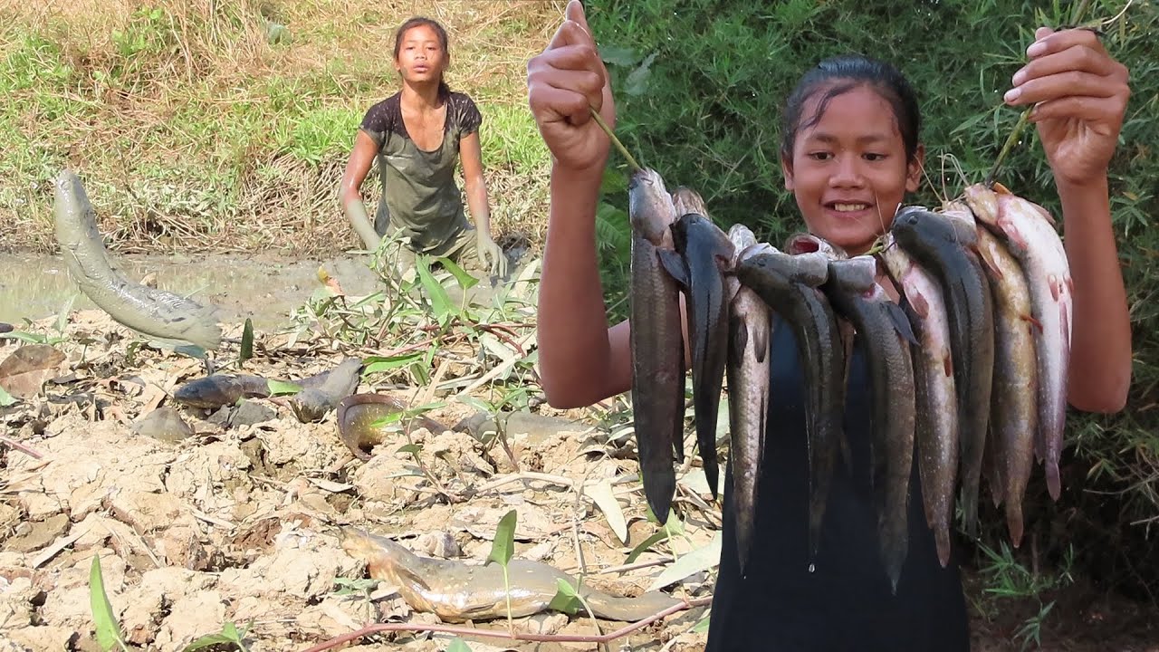 Hi to day I want to show you about videos: Catching Fish in Mud Lake to Grilled for lunch