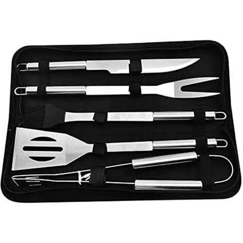 Made of high-quality stainless steel, these tools are durable, rust-resistant, and easy to clean. The set includes a spatula, fork, tongs, basting brush, and grill brush – all the essentials for grilling up a feast for your friends and family. Each tool features a comfortable handle for a secure grip, making it easy to flip burgers, turn sausages, and brush on your favorite barbecue sauce.