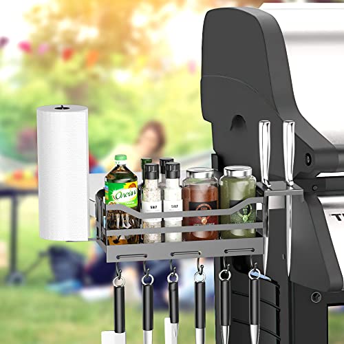 【NO MESSY ANY MORE】:The grill caddy size is: 13.07″ L x 4.33″ W x 5.43″ H, which is large and deep to storage your spice jars and oil bottles so that free up your counter space. The paper towel holder to store kitchen paper, let clean more conveniently at your fingertips when the sauce flying. The knife holder will provide extra space for storaging knives, upgraded double-hook design is more stable than others. This 4 in 1 grilling accessories always keep everythings in order and save more space