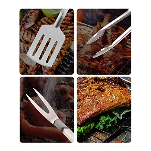 MaGiLL 3pcs Stainless Steel Grill Accessories Set Barbecue Fork Grilling Tongs Spatula Portable Multifunction BBQ Tools Kitchen Tools