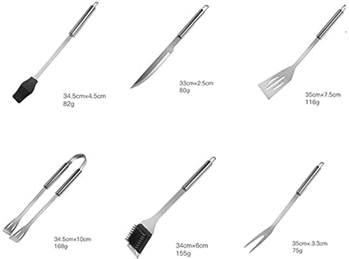 The spatula is perfect for flipping burgers and steaks, the fork helps you turn meat on the grill, the tongs are ideal for picking up and serving food, the basting brush allows you to add flavor to your dishes, the knife is handy for slicing and dicing, and the grill brush ensures that your grill is clean and ready for your next BBQ.