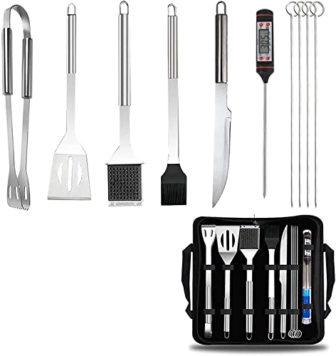 SDVantage Grilling Accessories BBQ Grill Tools Set, with Thermometer 10PCS Stainless Steel Grilling Kit for Camping, Kitchen, Barbecue Utensil Gifts
